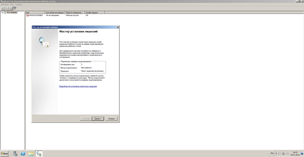 Запускаем мастер установки лицензий. Это можно сделать сразу после активации сервера лицензий, выбрав соответствующую опцию, либо открыв Пуск -> Администрирование -> Службы терминалов ->