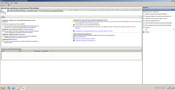 Открываем «Диспетчер удаленных приложений RemoteApp» (Пуск -> Администрирование -> Службы удаленных рабочих столов):