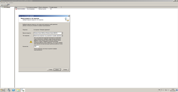 Выбираем версию продукта, тип лицензии (должен совпадать с ранее выбранным типом лицензий сервера лицензий), количество лицензий: