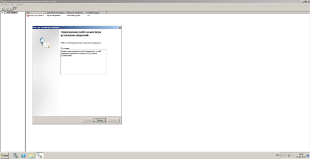Через несколько секунд ваш сервер будет успешно активирован. Теперь можно преступить к установке лицензий. Следует отметить, что после активации сервера лицензий нет необходимости сразу покупать