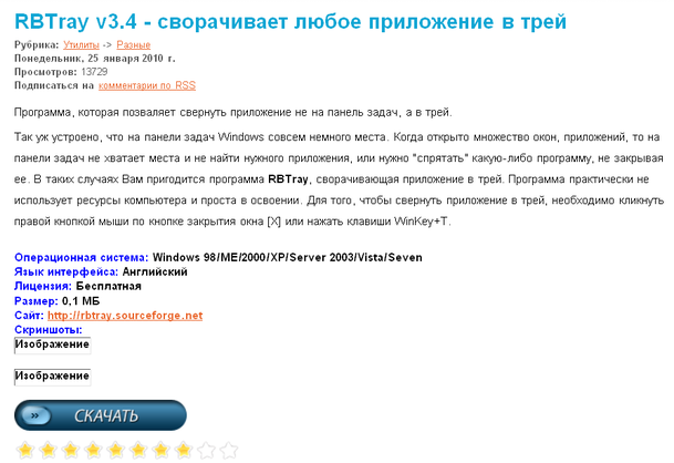 Воспользуемся программой RBTray v3.4. Эта программа сворачивает любое приложение в трей. Найти ее можно по адресу: http://smallprogs.ru/page/rbtray