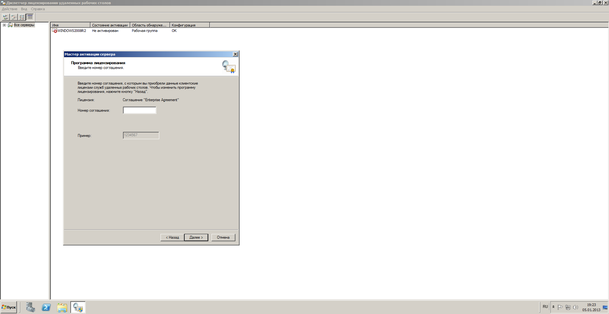 Вводим номер соглашения. Если Вы честно купили свою Windows 2008 R2, то номер соглашения у Вас уже есть. И ни в коем случае не пытайтесь искать в
